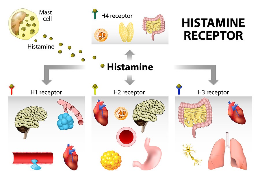 Histamine exerts its wide range of actions by interacting with four types of receptors (H1, H2, H3, and H4). All of these are G-protein coupled receptors (GPCRs), but they differ in distribution, signaling mechanisms, and physiological roles.