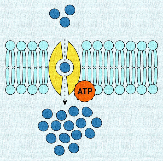 Active Transport: Active transport is a drug transport mechanism in which molecules move against the concentration gradient—from a lower concentration to a higher concentration—using energy (ATP) and specialized carrier proteins or pumps.