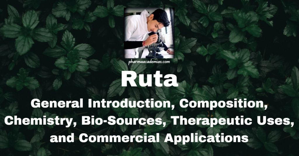 Ruta is a versatile plant with a broad range of medicinal, therapeutic, and commercial applications, owing to its rich composition of bioactive compounds, including alkaloids, flavonoids, coumarins, and essential oils. While it offers significant therapeutic benefits, such as antimicrobial, anti-inflammatory, antispasmodic, and vasoprotective effects, it is important to exercise caution due to its potential toxicity, especially when consumed in large quantities. With its diverse applications in pharmaceuticals, herbal medicine, cosmetics, agriculture, and even the food industry, Ruta remains a plant of considerable interest in both traditional and modern medicinal practices.