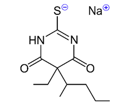 Thiopental Sodium, also known as thiopental or sodium thiopental, has the following chemical structure: